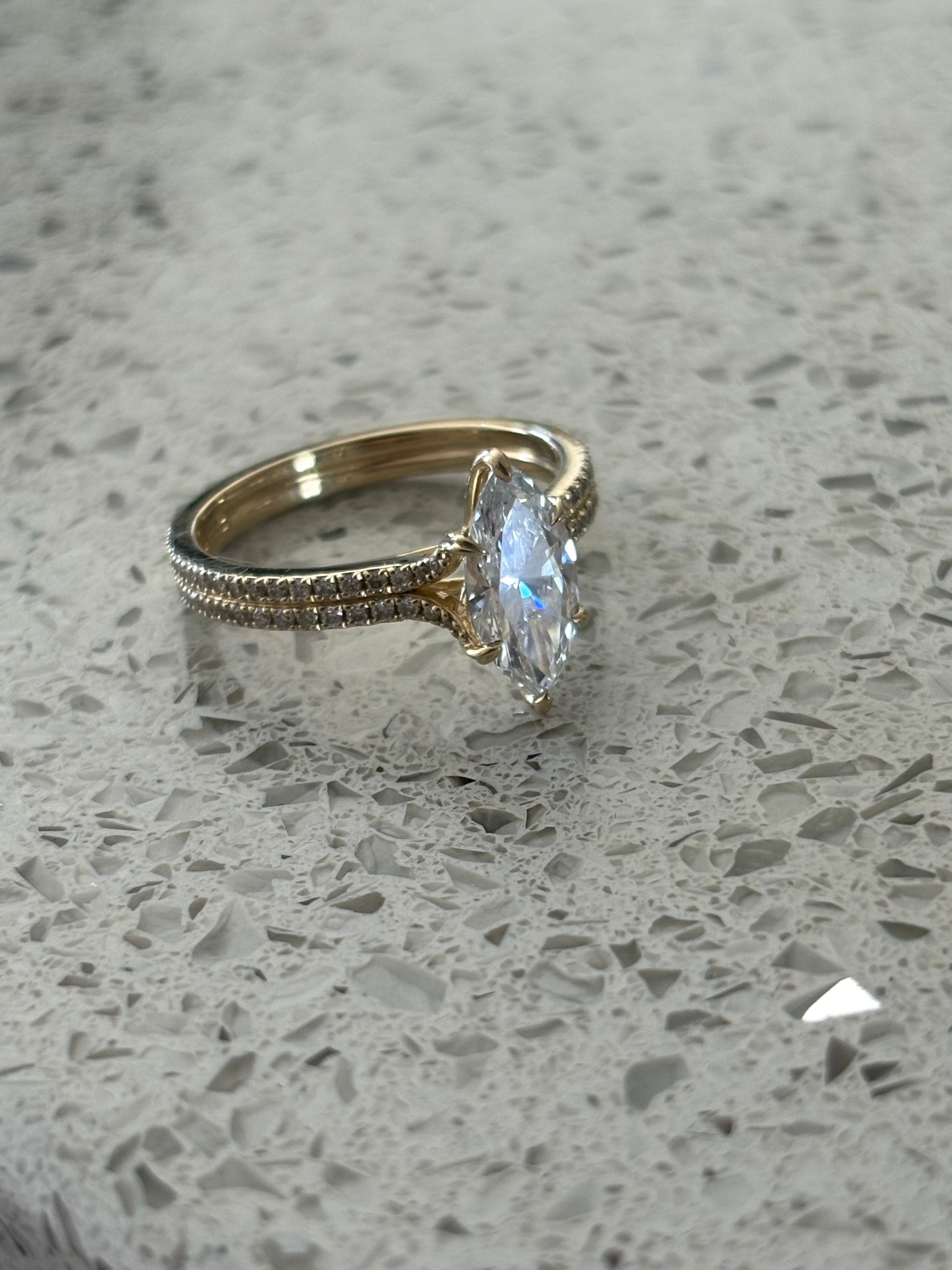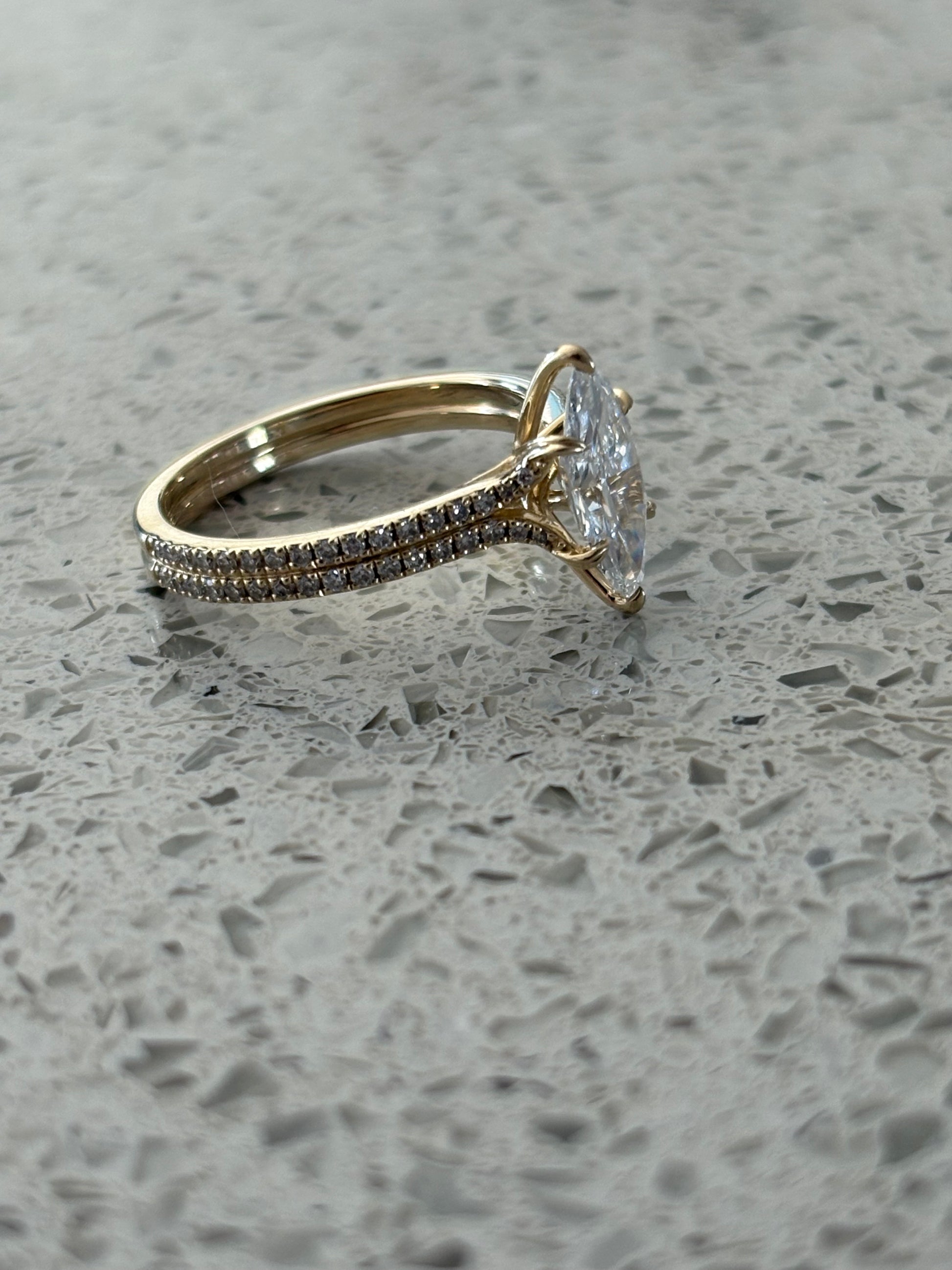 Type: Marquise Brilliant cut, 1.3 to, IGI certified Lab diamond. VS1, color E to D. Total Carat weight